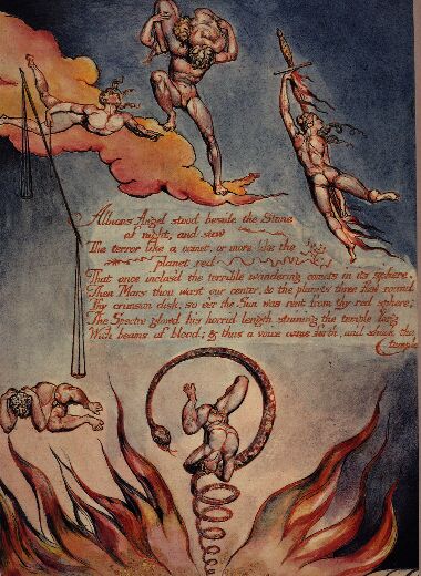 And the fierce flames burnt round the heavens, & round the abodes of