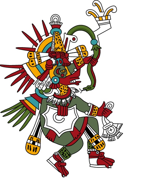 Quetzalcoatl, the Aztec god of wind, air, and learning, wears around his neck the "wind breastplate" ehecailacocozcatl, "the spirally voluted wind jewel"