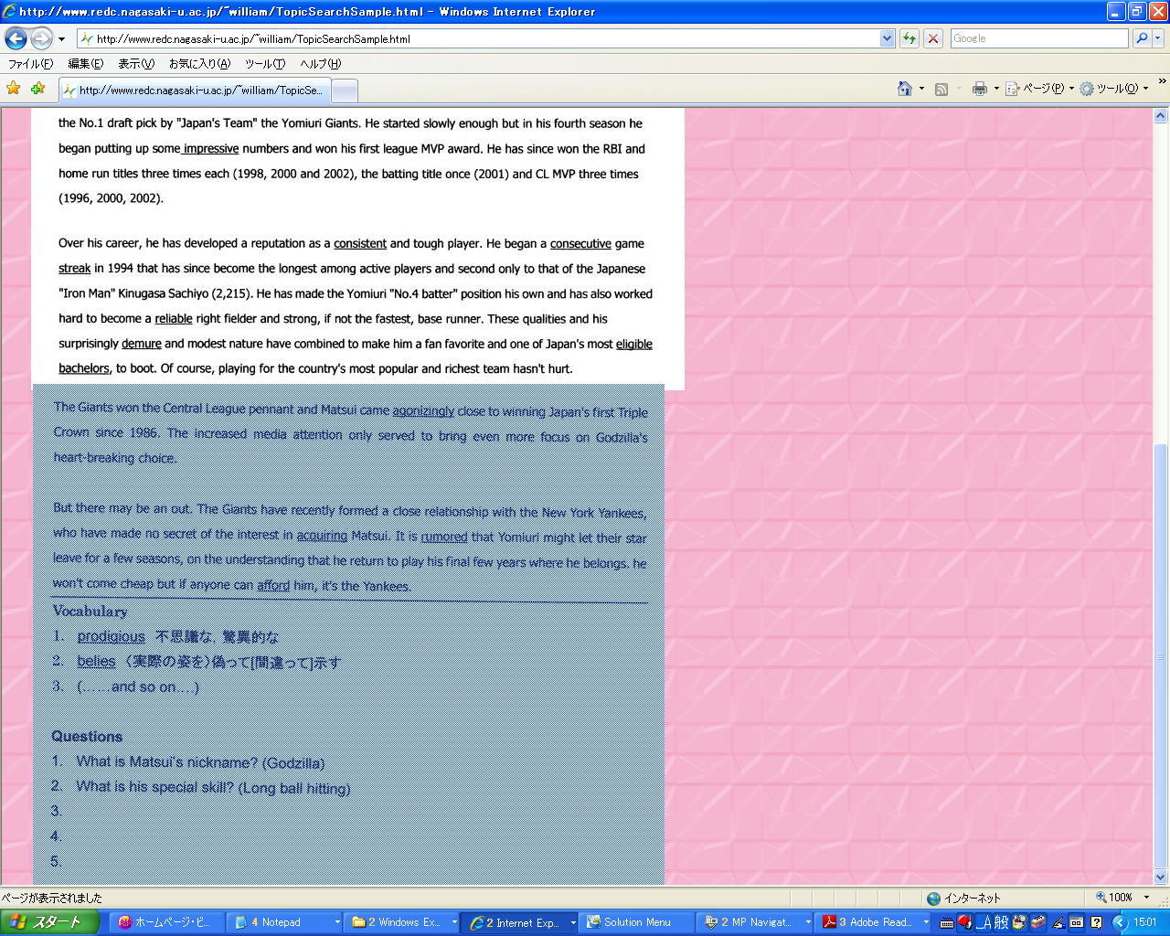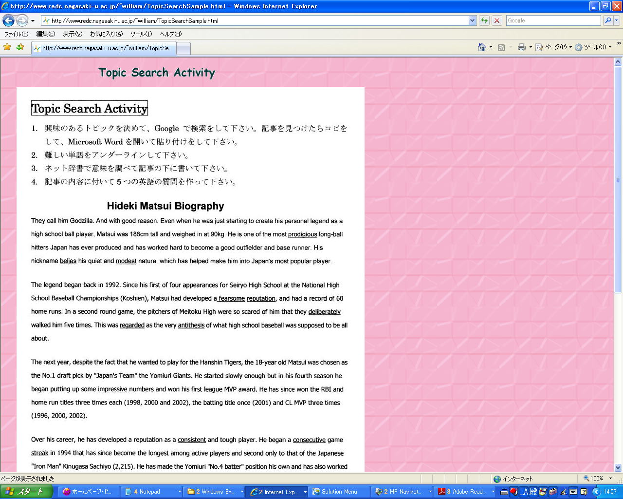 「Internet Search Vocabulary」は「Internet Search Activities」の宿題 (ここ)で