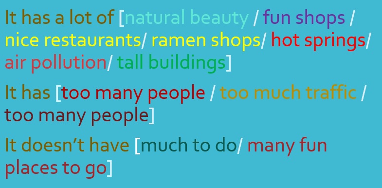 1. What's (Fukuoka/Kagoshima/....) like?