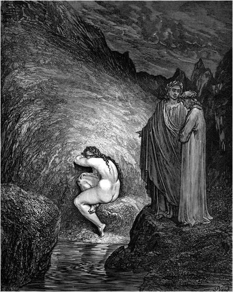 Gustave Dore, Myrrha in Hell, illustration for Dante's Divine Comedy, 1857