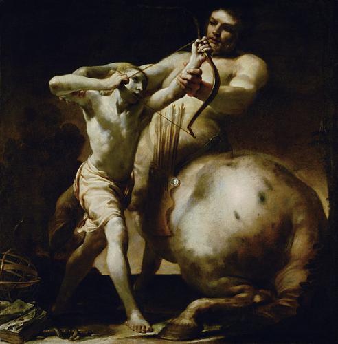 Centaur Chiron Teaches Young Achilles Archery, by Giuseppe Maria Crespi, 1695-1700