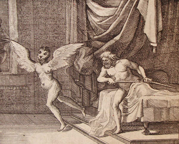 Nyctimene Changes into an Owl, by Johann Ulrich Krauss, 1690