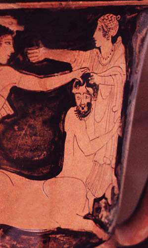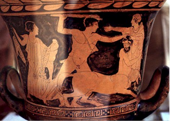 Deianira Gives Poisoned Robe to Hercules Attic red figure pelike, ca 440-430 B.C.