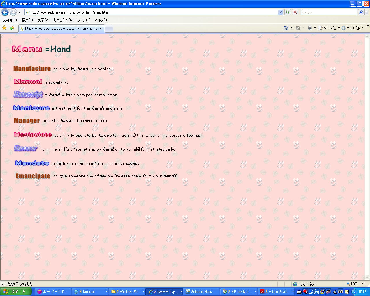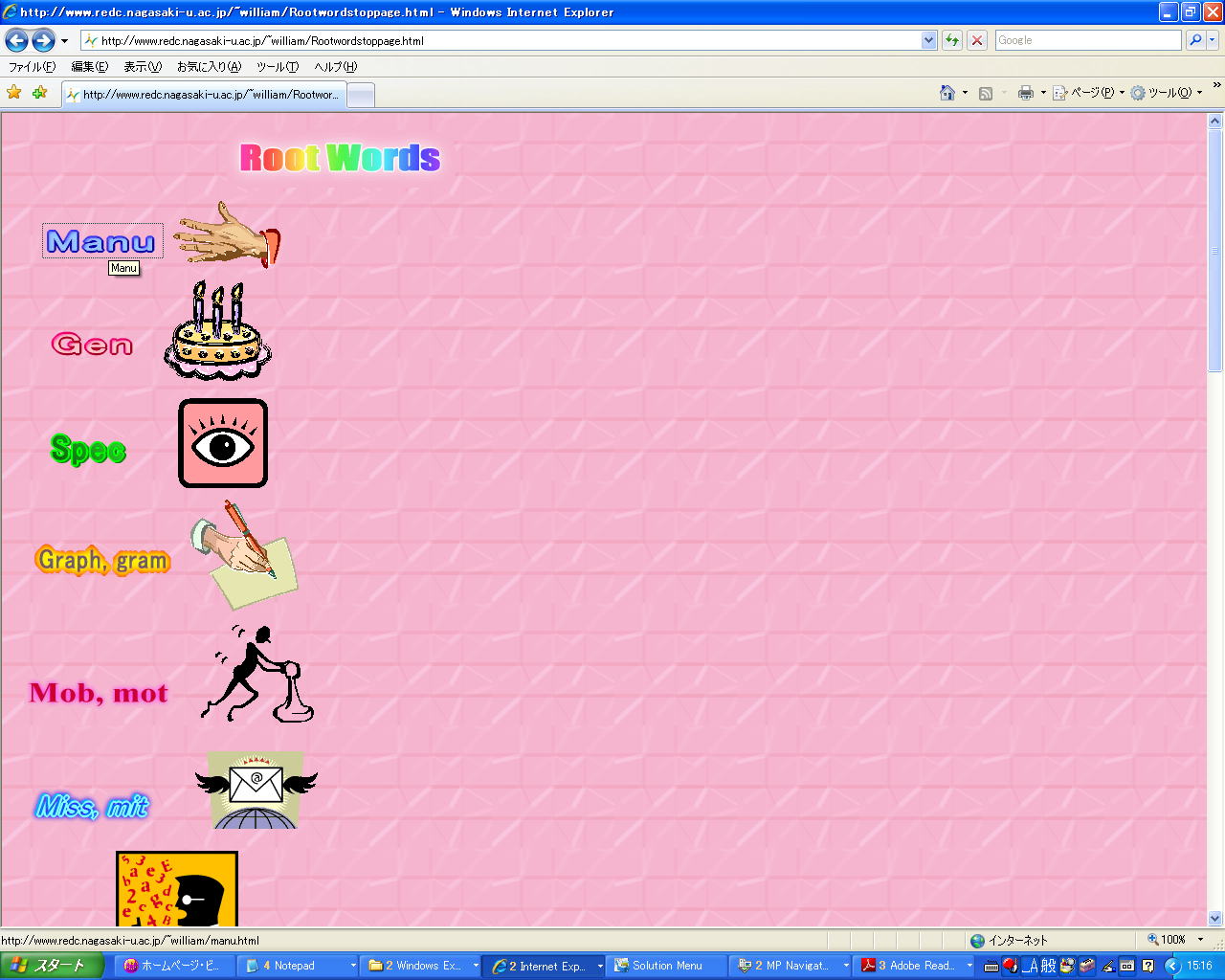 ●最初のページにその「Root」、その意味、その単語リストとその英語の