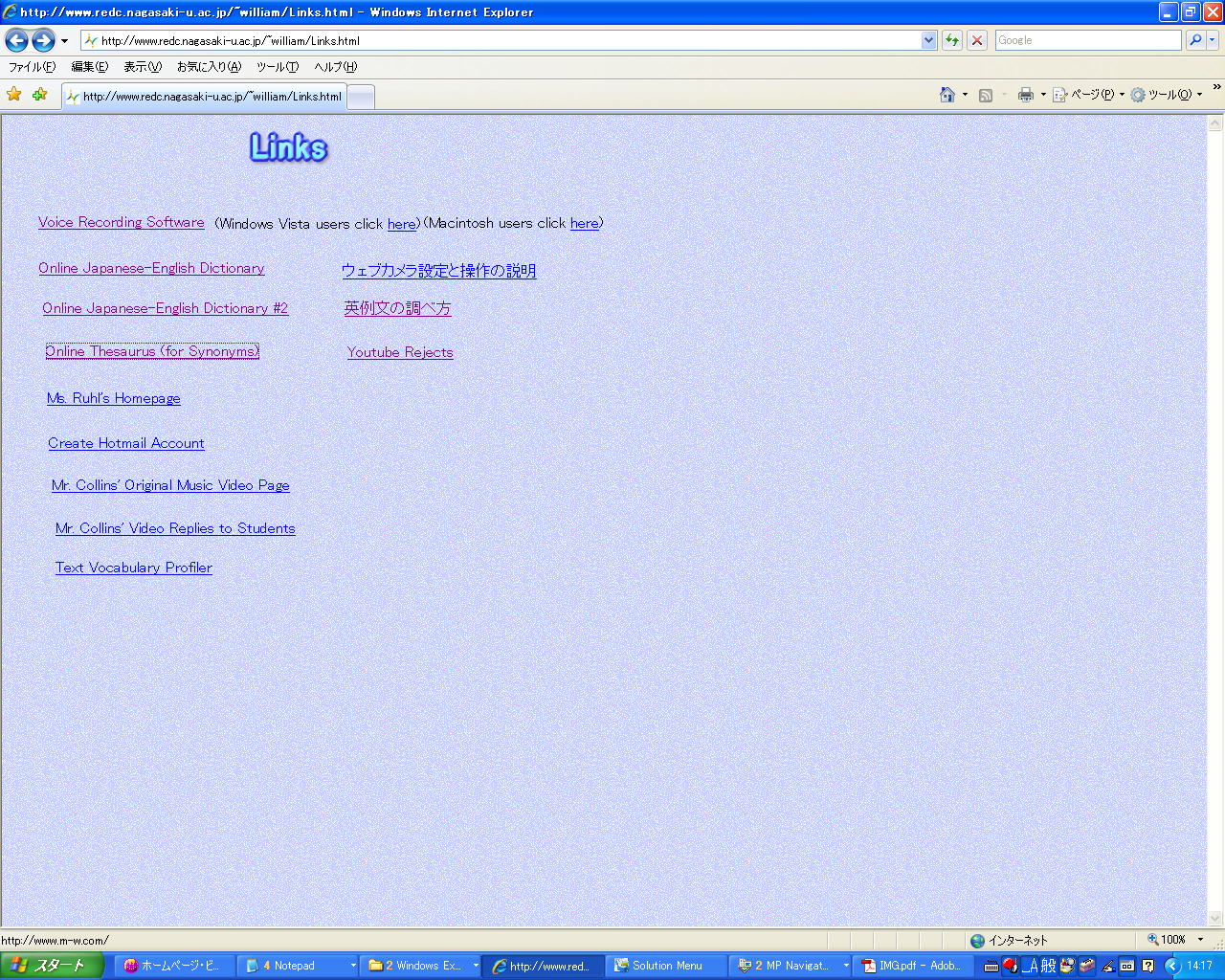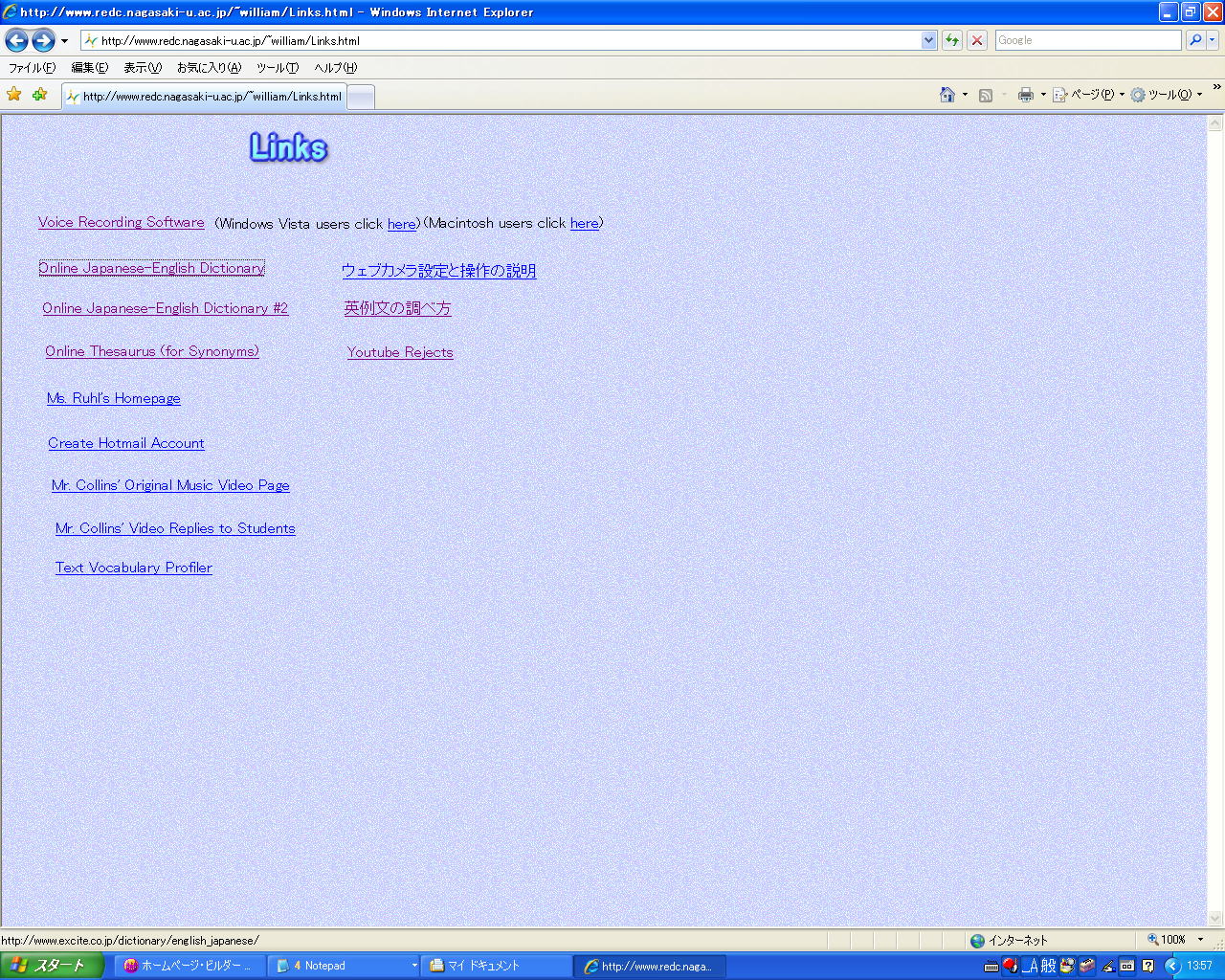 ●まず「日本語の意味」。ホームページの「Links」をクリックする:
