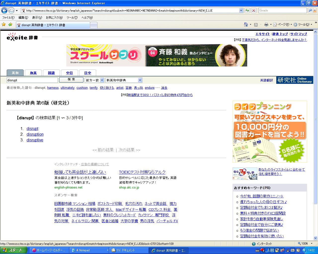 ●「Vocabulary Notebook」の合っているセクションを開く(例えば、この「disrupt」の