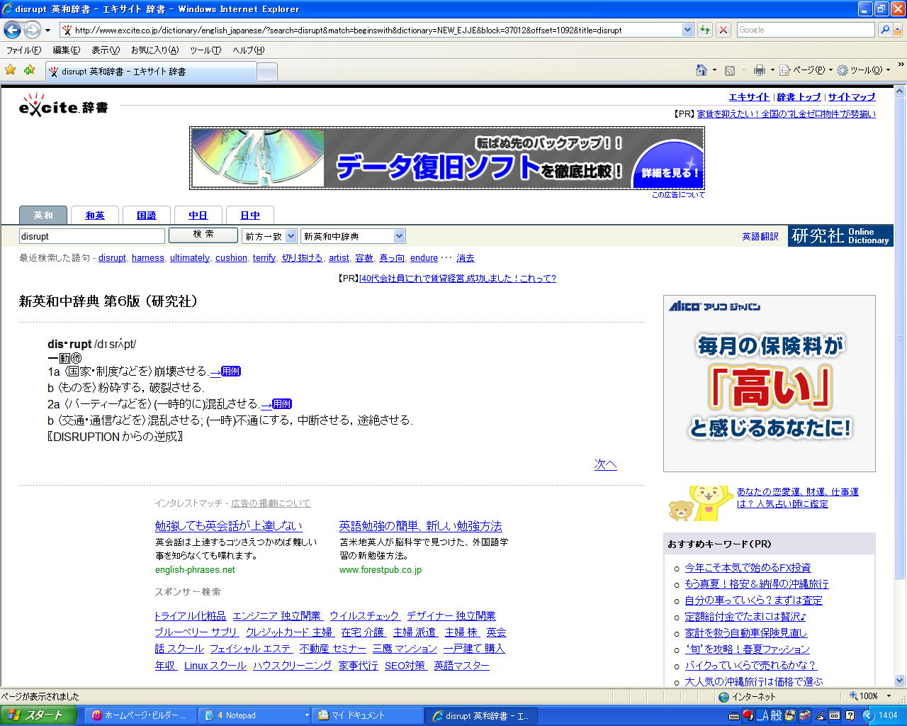 が多い。この「disrupt」の場合は「See Disorder」と書いてある: