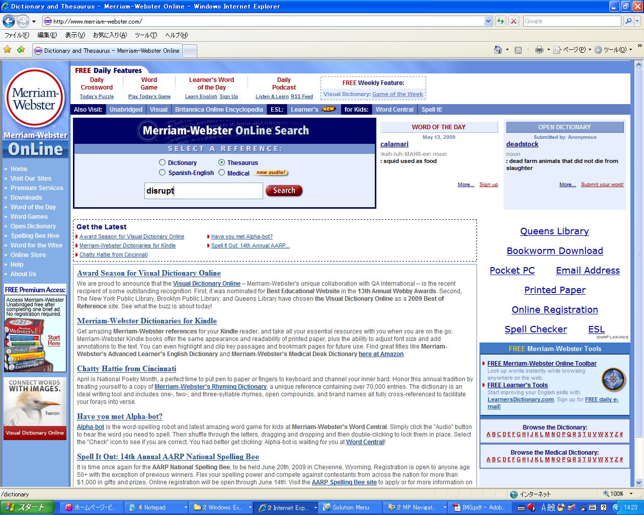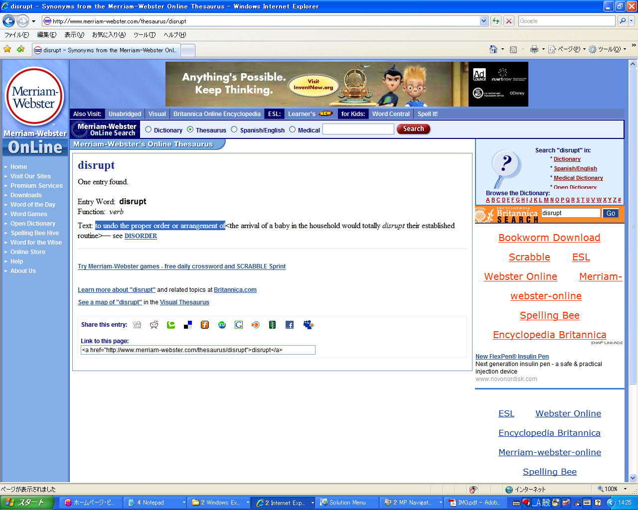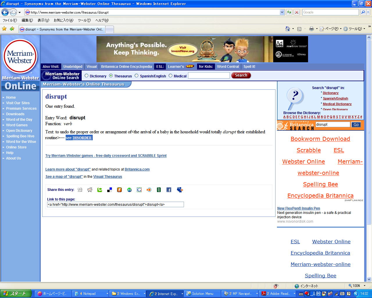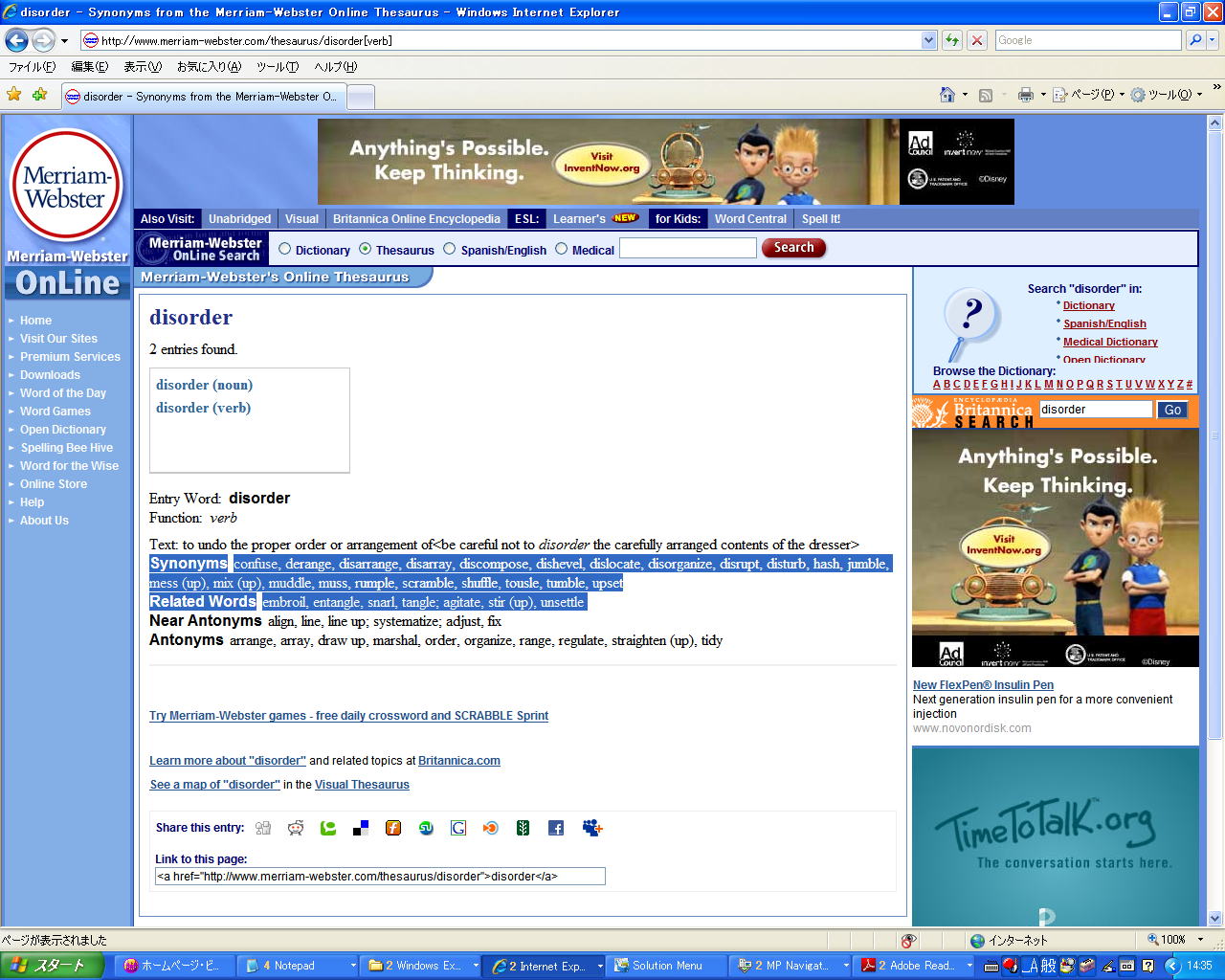 ●次は、「英語の定義」と「同意語」。今度、 「Links」ページの「Online Thesaurus」を選ぶ: