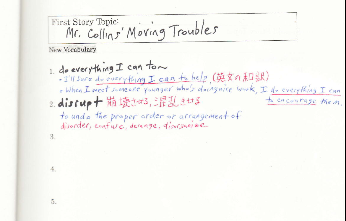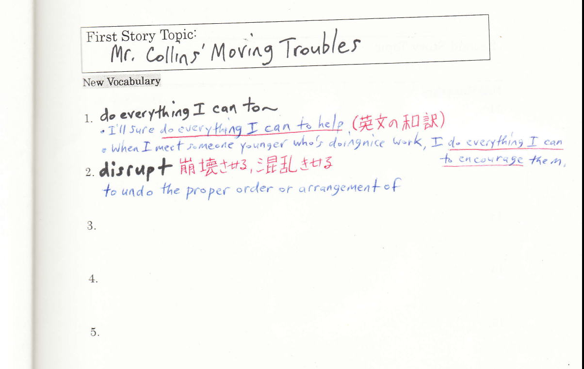 ●そのいくつかを選んで、「Vocabulary Notebook」に書く: