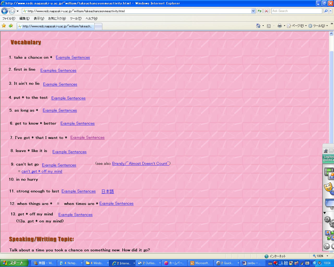 ●すると、単語リストと、一番下に「Speaking/Writing Topic」があります: