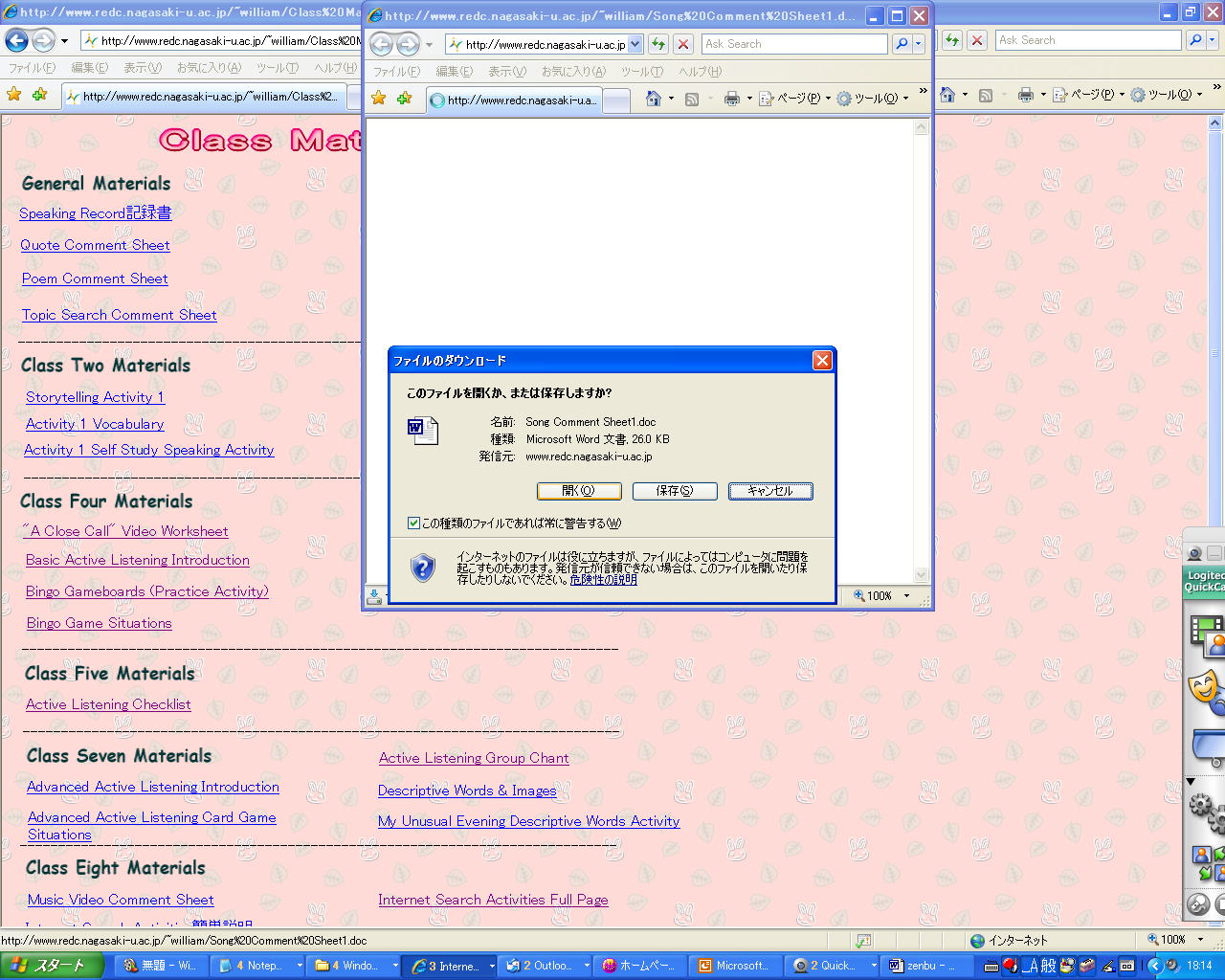 ●そのビデオを聞いたら、ホームページのトップページに戻って「Download Class Materials」