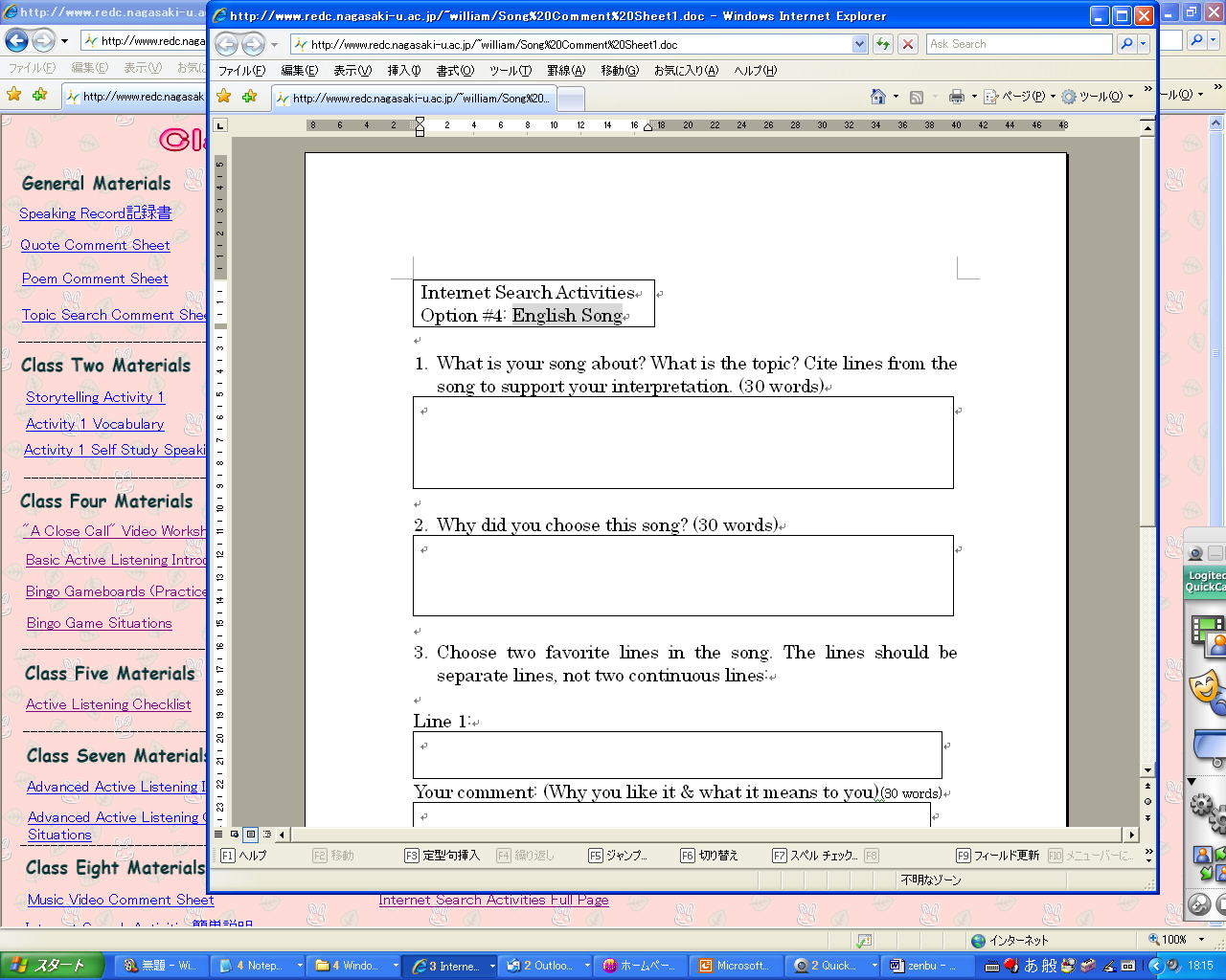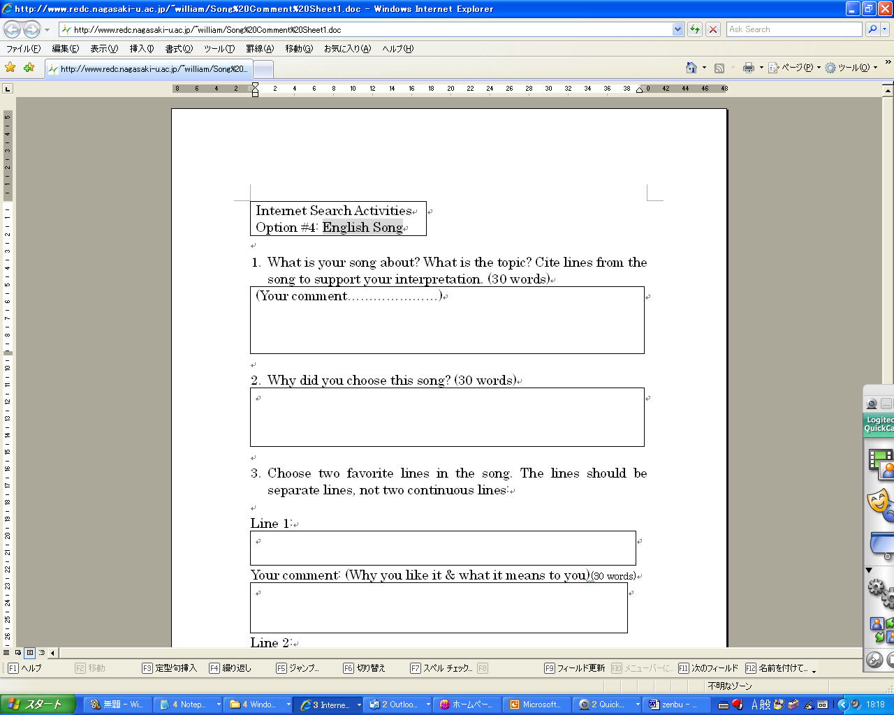 ●歌の感想を書く用紙が出て来ます: