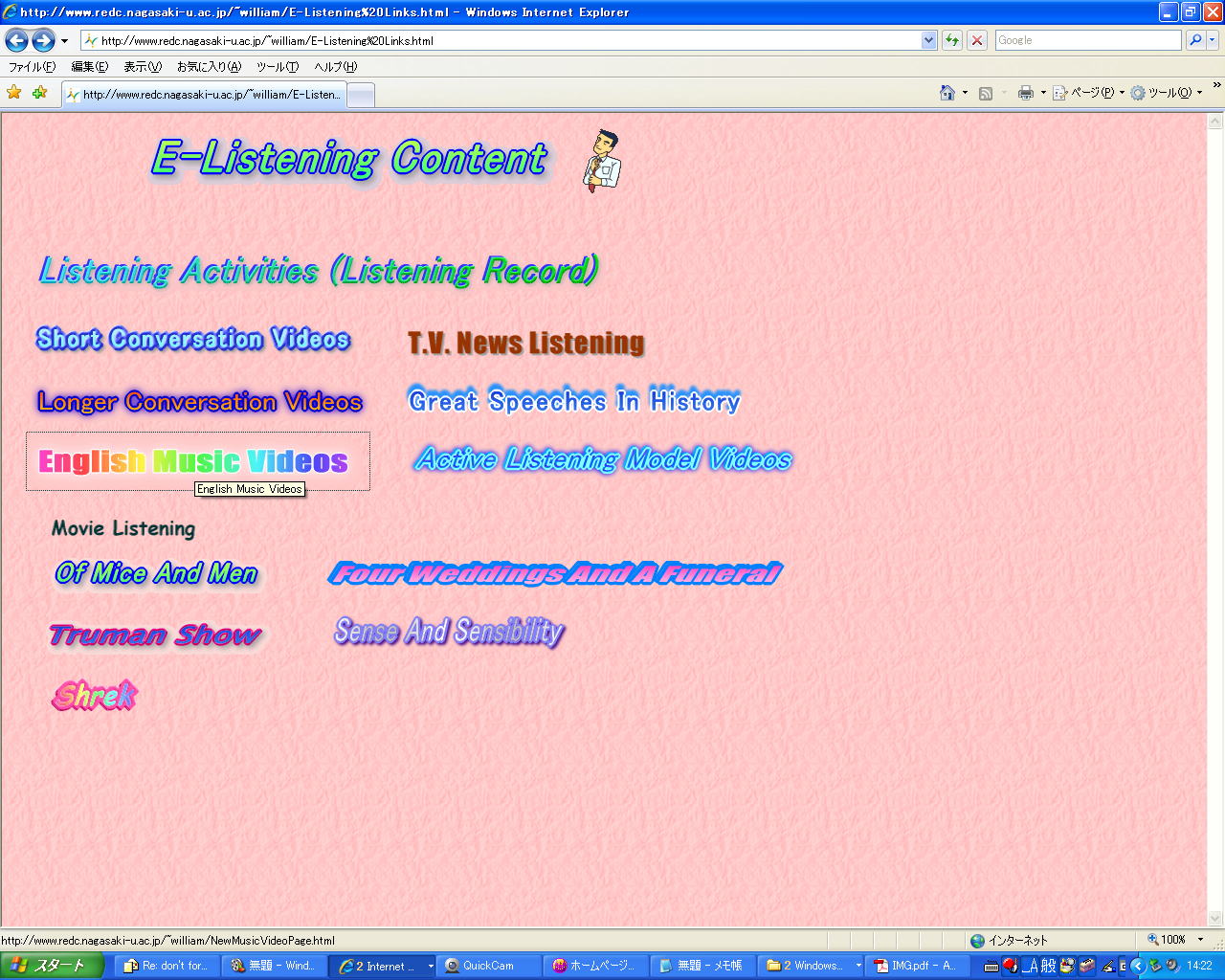 ホームページを開いて、 "E-Listening"を選ぶ: