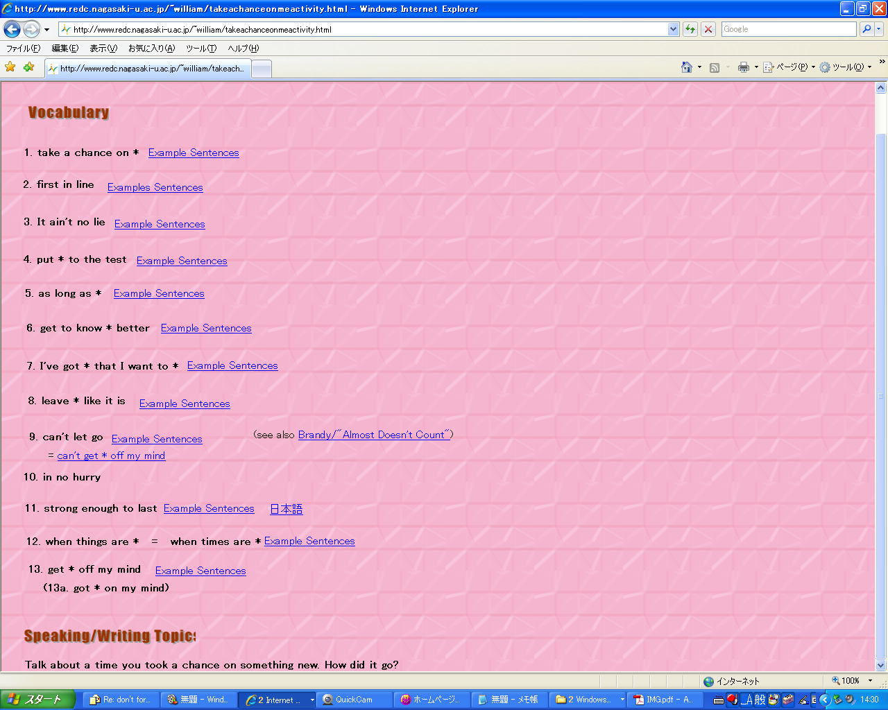 ●そのビデオのVocabulary ListとSpeaking Topicsが出て来ます:
