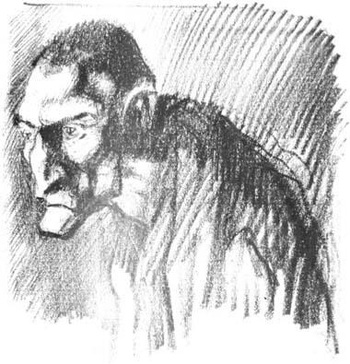 snake-like about his neck and shoulders. His hands clasped the edge of